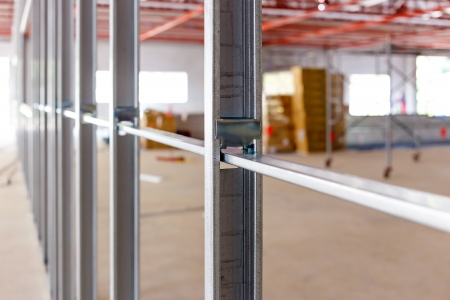 Frames for plasterboard for making gypsum walls by workers in an apartment is under construction, remodeling, renovation, extension, restoration, reconstruction, upgrade.