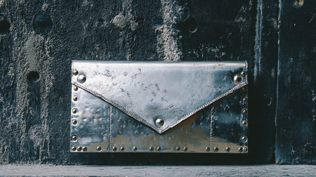 This striking metallic envelope clutch bag features a studded design and a sleek surface, perfect for adding a touch of elegance to any outfit.