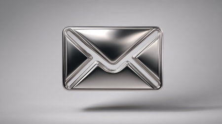 Metallic Envelope Icon with Smooth Shiny Surface Floating Above a Soft Gray Background for Email and Communication Themes