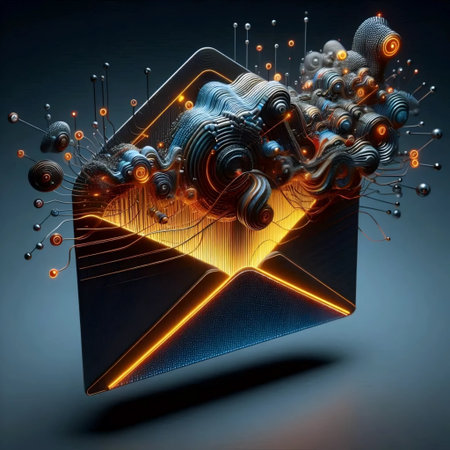 A collection of digital envelopes is seen floating in a dark virtual space, symbolizing modern communication methods.