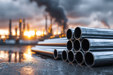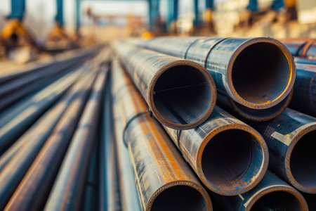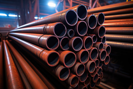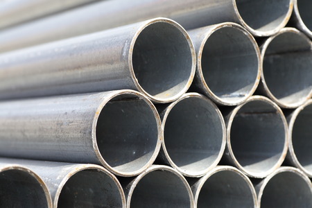 Stack of steel pipes in industrial