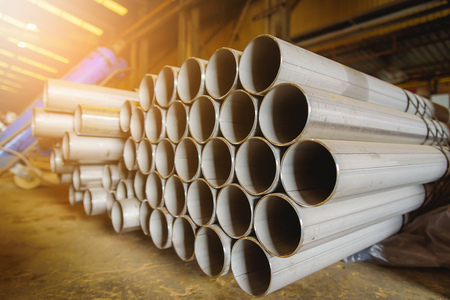 Metal pipe stainless stacked wait for material in manufacturing.