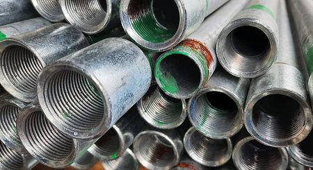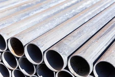 Close - up Stack of construction metal pipes