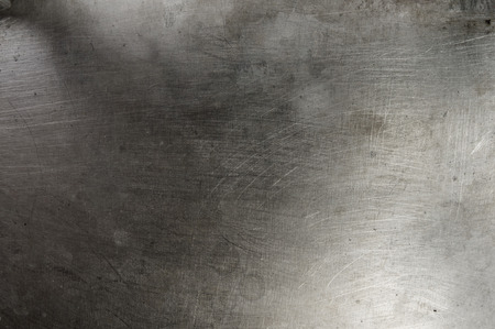 Metal background or texture of brushed steel plate with some spots and stains