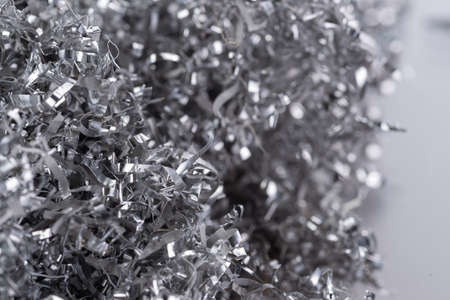 Silver metal shavings close-up. Abstract background. Selective focus.