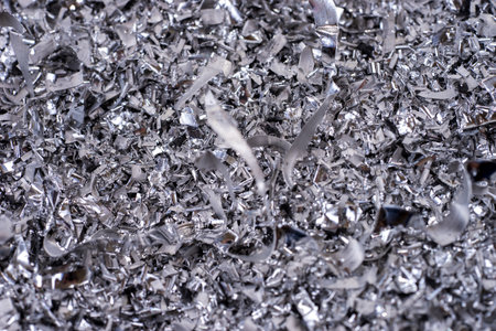 This close-up image showcases an array of shiny metal shavings that highlight their intricate textures and reflective properties, ideal for industrial use.