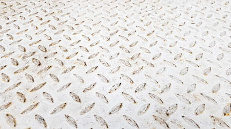 White steel sheet with embossed diamond pattern, used for floors and industrial building. White vintage steel plate useful as background.