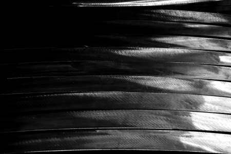 Stack of heavy metal reinforcement bars with periodic profile texture. Close up steel construction armature. Abstract industrial background concept. Copy space for text