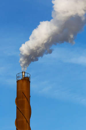 Smoke from the chimney of an industrial plant on a background of blue sky