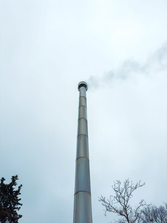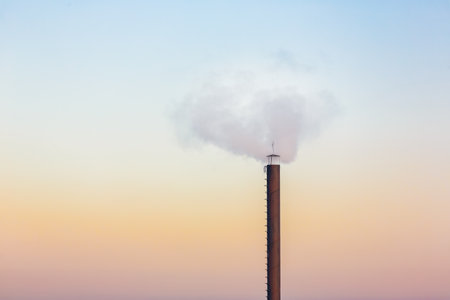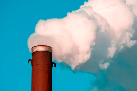 Industrial pipe against the sky, emitting harmful toxic emissions into the atmosphere. Inefficient production is destructive to nature.