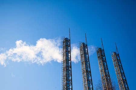 smoke pollution. Smoke pipes against the blue sky.
