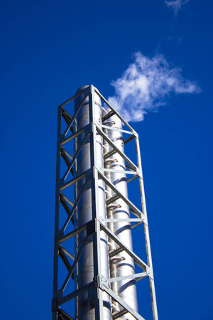 Tower pipe with smoke against blue sky