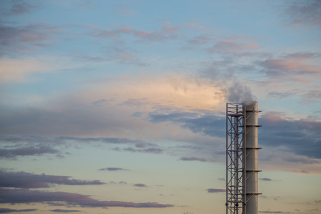 pipe factory smoke in the background of a beautiful sky