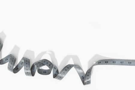 Measure tape isolated on white background. Weight loss, diet, overweight concept. Copy space