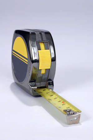 Measuring roulette yellow black on a white background banner with space for text. A construction tool