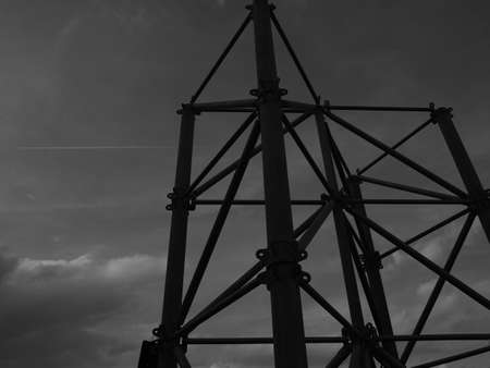 Complex structural image of the tower supporting the crane for unloading the wharf