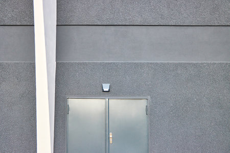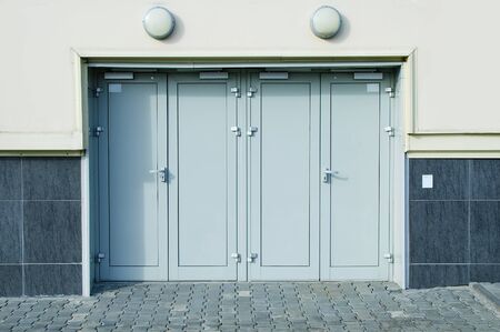 Wall with metal doors, facade detail with metal door in the city protection, metal wall textureWall with metal doors, facade detail with metal door in the city protection, metal wall texture