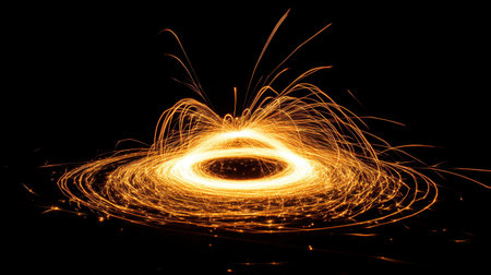 This captivating image showcases dynamic circular sparks emanating from a central point, creating an abstract visual effect against a dark background.