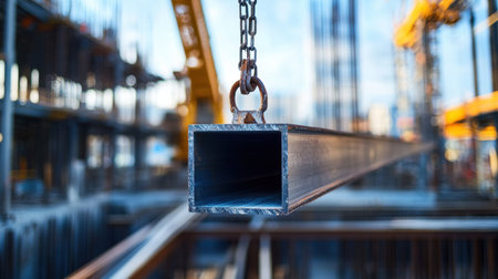 A captivating glimpse into an industrial construction site featuring exposed steel beams and natural light illuminating the workspace, highlighting urban architecture evolution.
