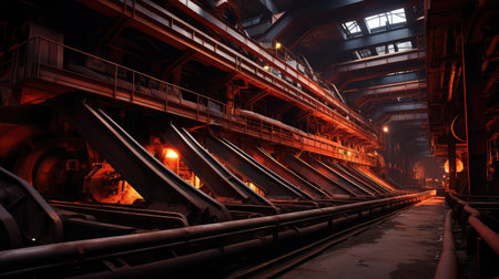 metallurgical plant, with massive machines and structures for the production of metal products, created with generative ai