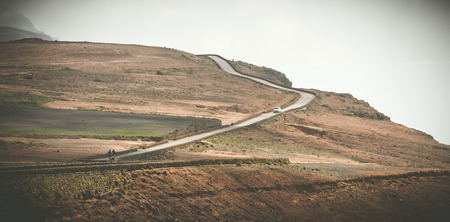 beautiful landscape with mountain road in Lanzarote, Canary Islands