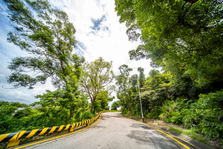 Asphalt road going through the jungle tropical forest, shallow depth of field
