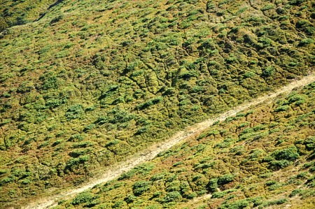 Aerial view of a path in the Carpathian mountains.