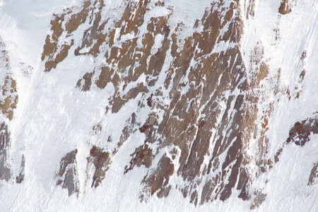 Snowy rocky mountain in Lo Valdés Valley, Cajón del Maipo, Central Andes of Chile.