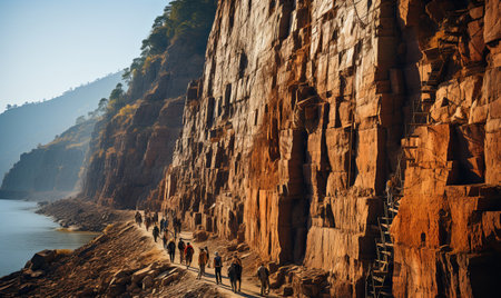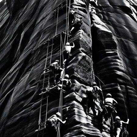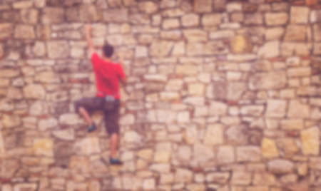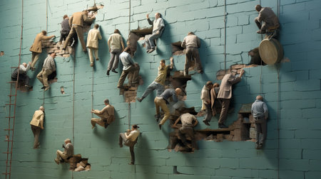 Hazy shapes scaling a towering wall their determination and strength captured in soft focus