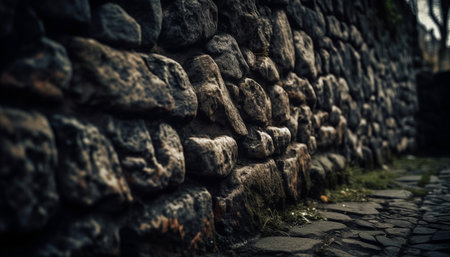 Stone wall and brick building feature in old architecture pattern generated by artificial intelligence