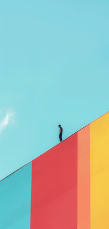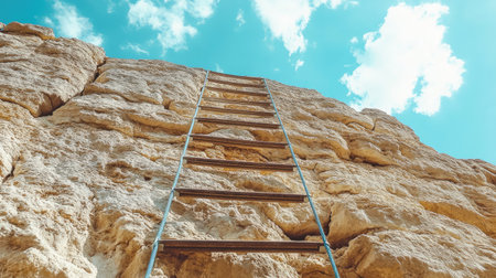 ladder on bright colored wall, in the style of yellow and black minimalism, by ai generative