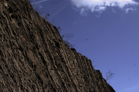 Majestic Rocky Cliff Under Vibrant Blue Sky.