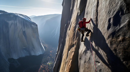 Climber climbs a challenging route in Yosemite National Park, California, USA.