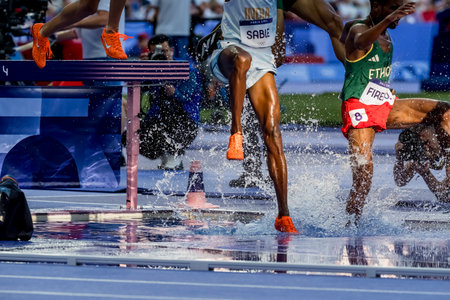 SAMUEL FIREWU (ETH) of Ethiopia, competes in the Men's 3000m Steeplechase Round 1 at the Stade de France Stadium during the 2024 Paris Summer Olympics in Paris, France.