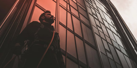 Agile Industrial climber skyscraper. Danger extreme equipment. Generate AI