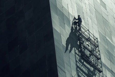 A silhouette against the urban skyline, a figure scales a skyscraper, symbolizing ambition, determination, and resilience in the pursuit of career growth.