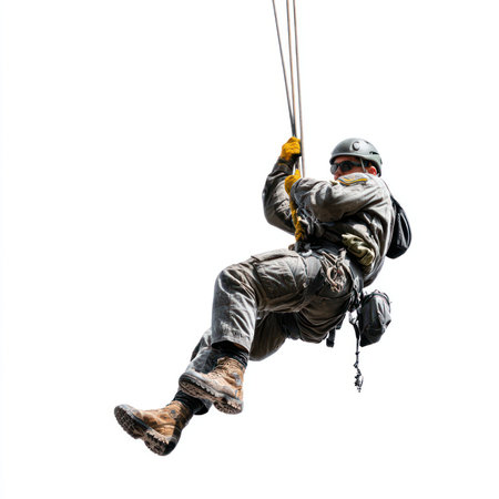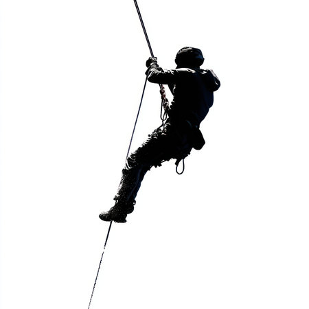 Experience the thrill of abseiling in an isolated landscape, captured with a quality cutout for stunning visual appeal. Ideal for adventure enthusiasts.