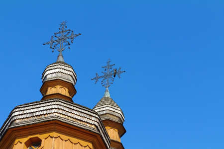 three crosses on the top of Ukrainian autocephalous Orthodox church of St.Nicholas in Skhidnytsa, Lviv region of Ukraine