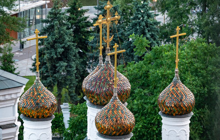 Crosses on the houses of the Church of St. Nicholas the Wonderworker in Golutvin (Chinese courtyard) in the center of Moscow.
