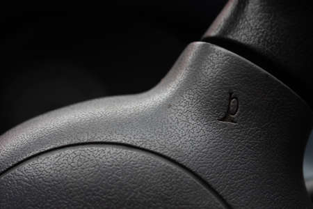 renault logo on the steering wheel in the interior of a new car renault logo on the steering wheel in the interior of a new car. Krasnoyarsk, Russia, June 26, 2021