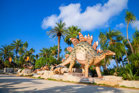 Nong Nooch Garden, PATTAYA, THAILAND - April 1, 2020: Dinosaur Valley? in Nong Nooch Tropical Botanical Garden, Pattaya, Thailand.