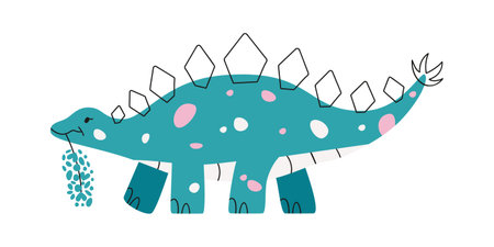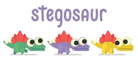 Cute Sregosaurus walking. Dinosaur life. Vector illustration of prehistoric character in flat cartoon style isolated on white background. Funny Stegosaur with big eyes. Variants of coloring and pose.