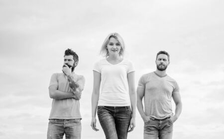 Influential women leader. Leadership concept. Woman in front of men feel confident. Moving forward support male team. What makes successful female leader. Girl leader qualities possess naturally