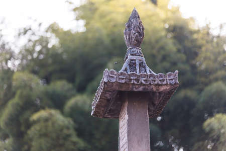 Ancient stone carving in the graveyard at Bali, Indonesia. Bali is a popular tourist destination.