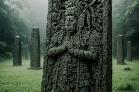 Ancient Mayan stone statues in the jungle of Yucatan, Mexico