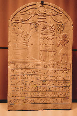 Cairo, Egypt - November 02, 2021: Ancient Egyptian Plates and Walls carrying Hieroglyphics in the Egyptian Museum in Cairo