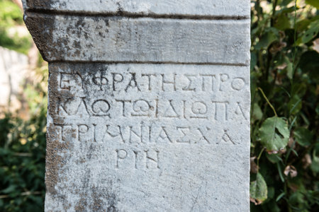 SANLIURFA, TURKIYE - FEBRUARY 02, 2025: Embossed Inscription in Sanliurfa Archaeology and Mosaic Museum