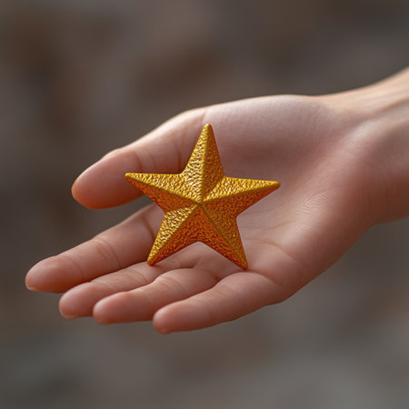 A vibrant golden star rests gently on an open palm, reflecting light beautifully.