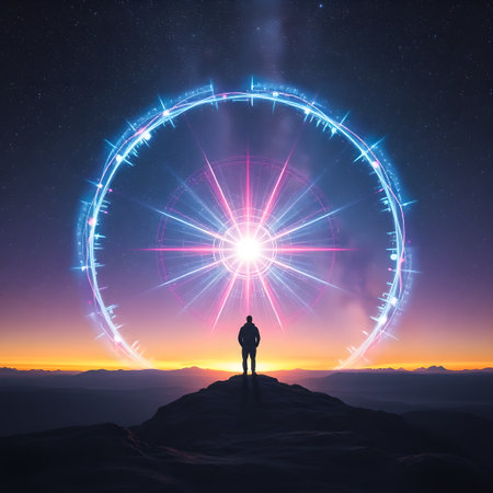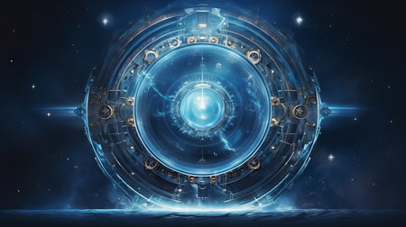 Futuristic Celestial Device with Glowing Core in Starry Observatory