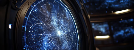 Exploring the intricate digital map of a galaxy in a futuristic space observatory during a starry night